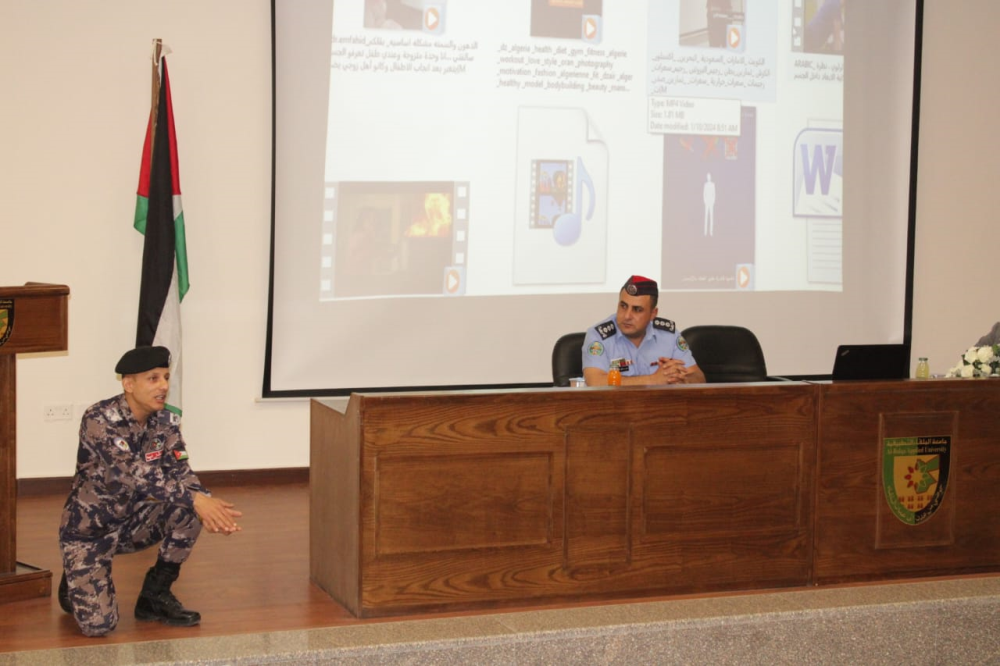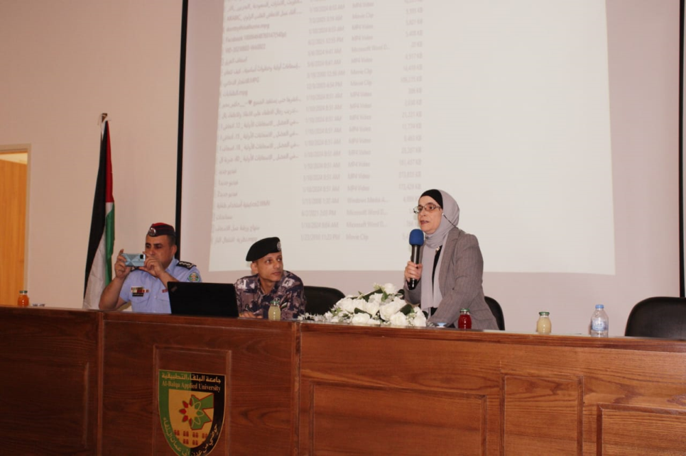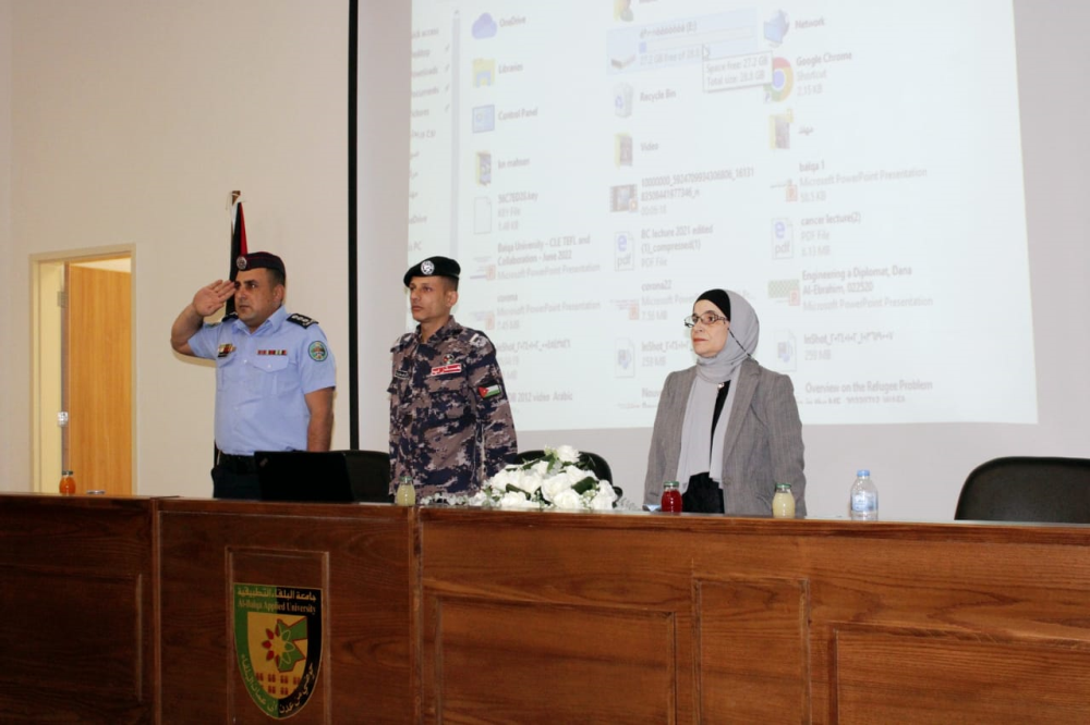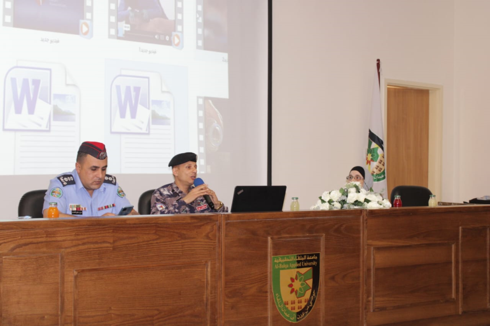 انسجامًا مع رؤية ورسالة جامعة البلقاء التطبيقية وتعزيزًا لنهج وتوجيهات رئيس جامعة البلقاء التطبيقية الأستاذ الدكتور أحمد فخري العجلوني بضرورة استمرارية تقديم خدمات مجتمعية متميزة للمجتمع المحلي ونيابة عن عميد كلية الأميرة عالية الجامعية الأستاذ الدكتور ناجي السعايدة عقد مساعد العميد لشؤون التدريب والتطوير والجودة /شعبة خدمة المجتمع المحلي والدراسات والاستشارات محاضرة بعنوان ( السلامة العامة ) بالتعاون مع الشرطة المجتمعية والدفاع المدني.
