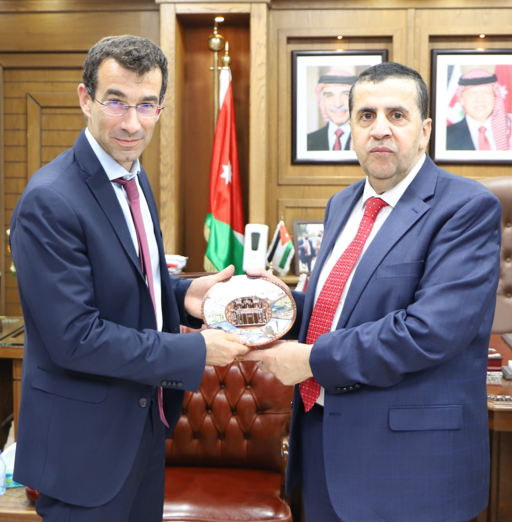 استقبل رئيس جامعة البلقاء التطبيقية الأستاذ الدكتور أحمد فخري العجلوني في مكتبه سعادة سفير الإتحاد الأوروبي بيير- كريستوف تشاتزيسافاس.