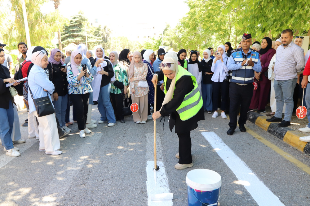 كما أشار الدكتور المفلح إلى أن النشاط الذي نظمته وحدة التنمية وخدمة المجتمع المحلي تضمن تدريباً عملياً لطلبة مساق السلامة المرورية في الجامعة على كيفية عمل ممرات للمشاة في الأماكن المناسبة داخل الجامعة من أجل زيادة الوعي والثقافة المرورية مقدماً الشكر للنقيب المجالي على جهوده المتميزة والمثمرة التي تساهم في إثراء عقول طلبة الجامعة بالعديد من الأمور التي تتعلق بالجوانب الأمنية.