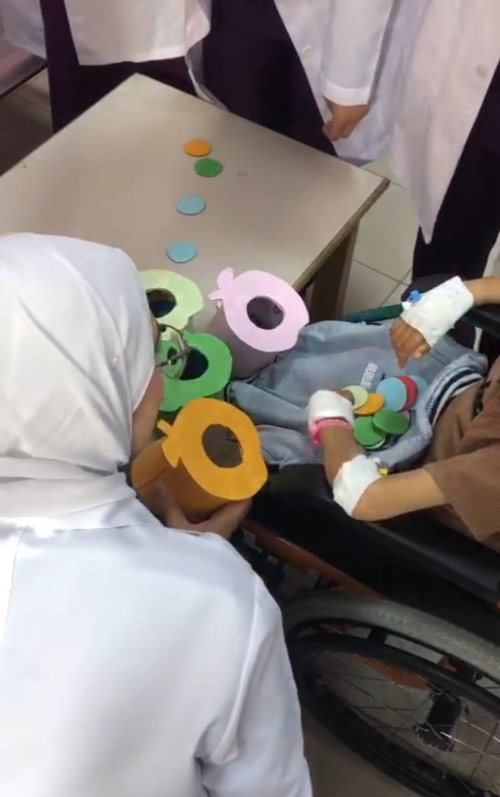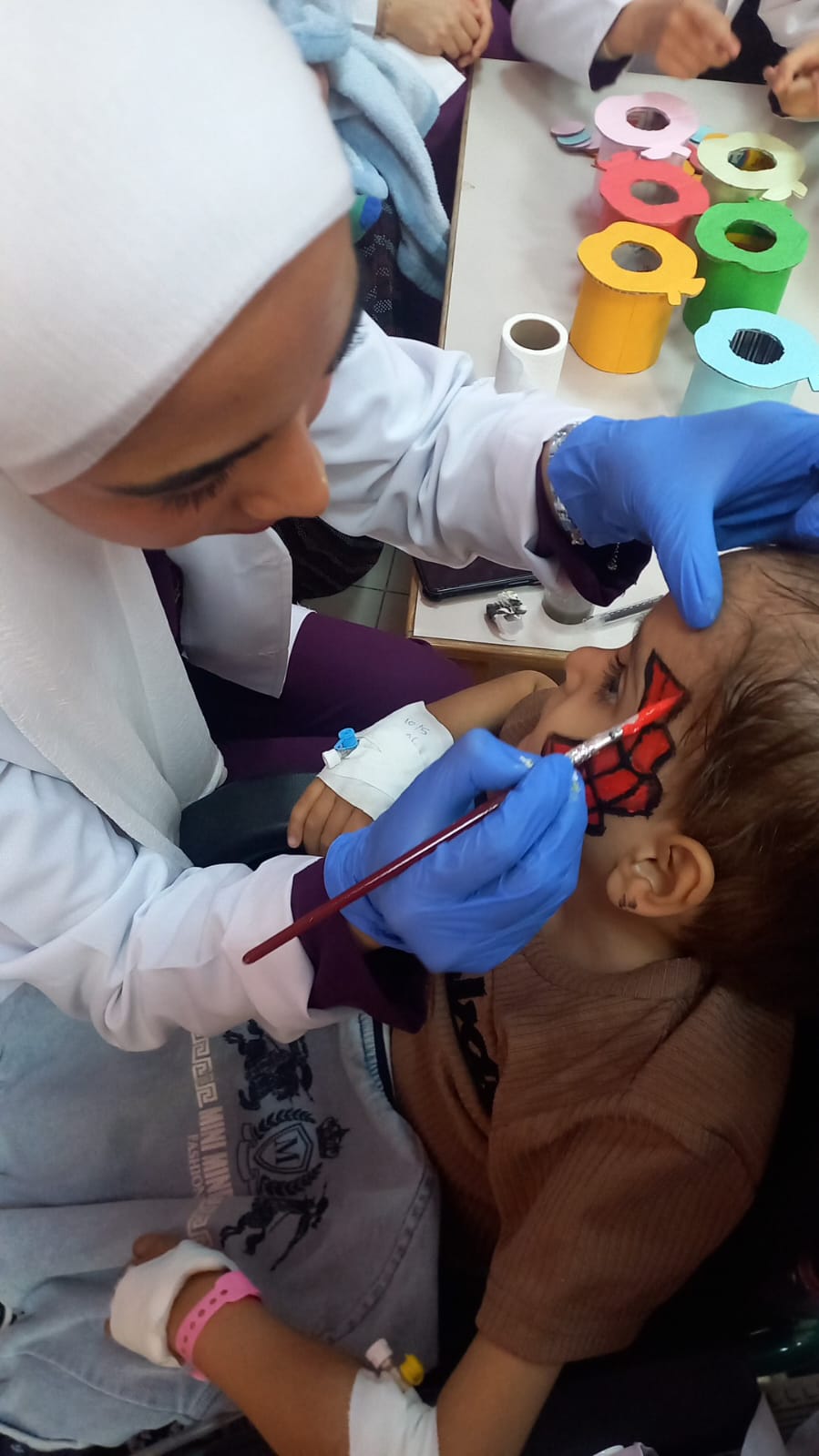 واشتملت الفعالية التي تمت بمشاركة طالبات تخصص القبالة / السنة الثالثة على الرسم على الوجوه وألعاب تفاعلية شارك فيها الأطفال ، كما عبر ذوو الأطفال والكادر التمريضي عن تفاعلهم الإيجابي وفرحتهم بتغيير الأجواء وخلق البهجة والفرح والسرور.
