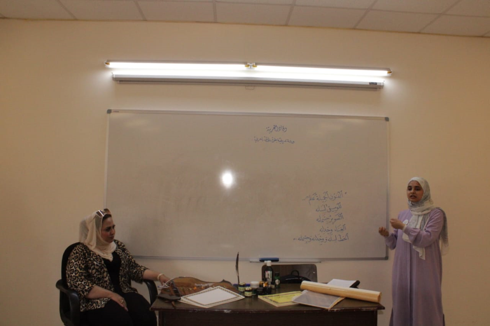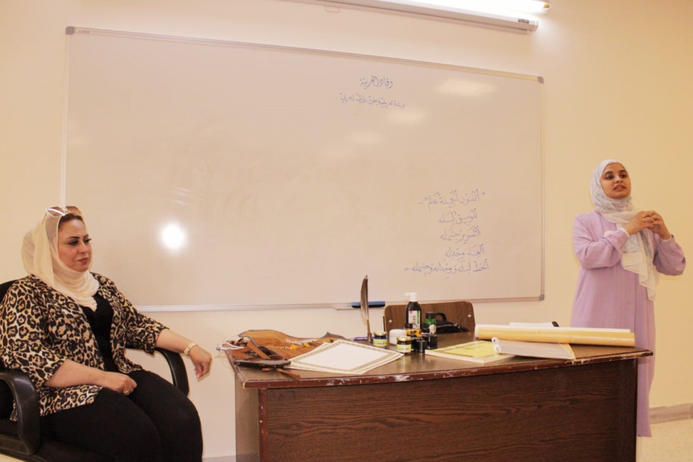 ورشة عمل في كلية الأميرة عالية الجامعية بعنوان ( فن الخط العربي )
