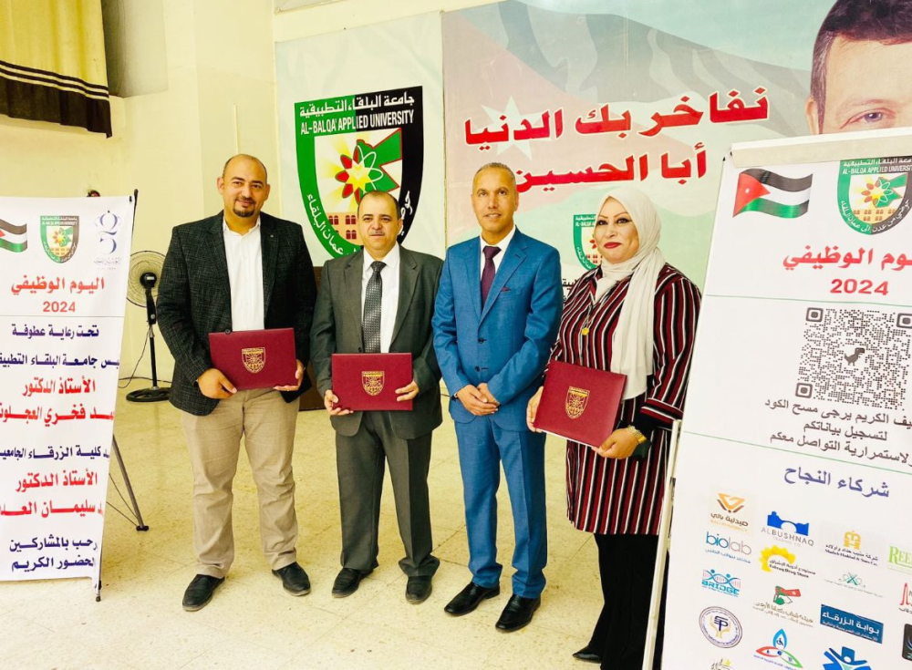 مندوبا عن عطوفة رئيس جامعة البلقاء التطبيقية الأستاذ الدكتور احمد فخري العجلوني رعى الأستاذ الدكتور زيد سليمان العدوان عميد كلية الزرقاء الجامعية فعاليات إقامة (اليوم الوظيفي 2024) وذلك بمشاركة (30) من نخبة الشركات والمؤسسات والمكاتب ذات العلاقة في التوظيف والتدريب التقني وبحضور عدد من افراد المجتمع المحلي وأعضاء الهيئتين التدريسية والادارية والطلبة الخريجين والمتوقع تخرجهم، ويأتي اليوم الوظيفي لتعميق الشراكة الفاعلة بين الشركات المختلفة والتعريف بالخدمات التي تقدمها وتوفير فرص توظيف للباحثين عن العمل.
