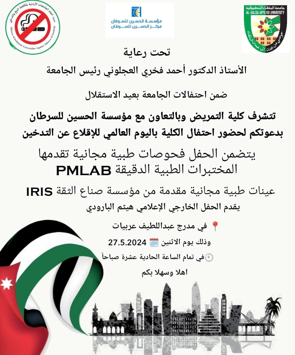 كلية التمريض تدعوكم لحضور احتفال الكلية باليوم العالمي للإقلاع عن التدخين