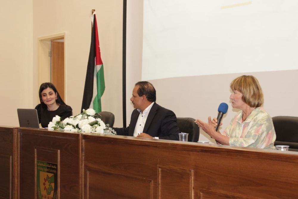 تجسيدًا لرؤى جامعة البلقاء التطبيقية وسعيها الدؤوب لتعريف أعضاء الهيئة التدريسية والإدارية والطلاب في الجامعة بكافة الفرص المتاحة لهم ضمن المشاريع العلمية والبحثية، والتبادل الأكاديمي والطلابي، والتدريب الخارجي، ومن خلال التشبيك مع الجامعات الدولية المرموقة استضاف عميد كلية الأميرة عالية الجامعية الأستاذ الدكتور ناجي السعايدة الدكتورة خرستينا تشوبانوفا أستاذة اللغة العربية في جامعة صوفيا البلغارية والمنسق الأكاديمي للاتفاقية ما بين الجامعتين الدكتور ناجي القبيلات