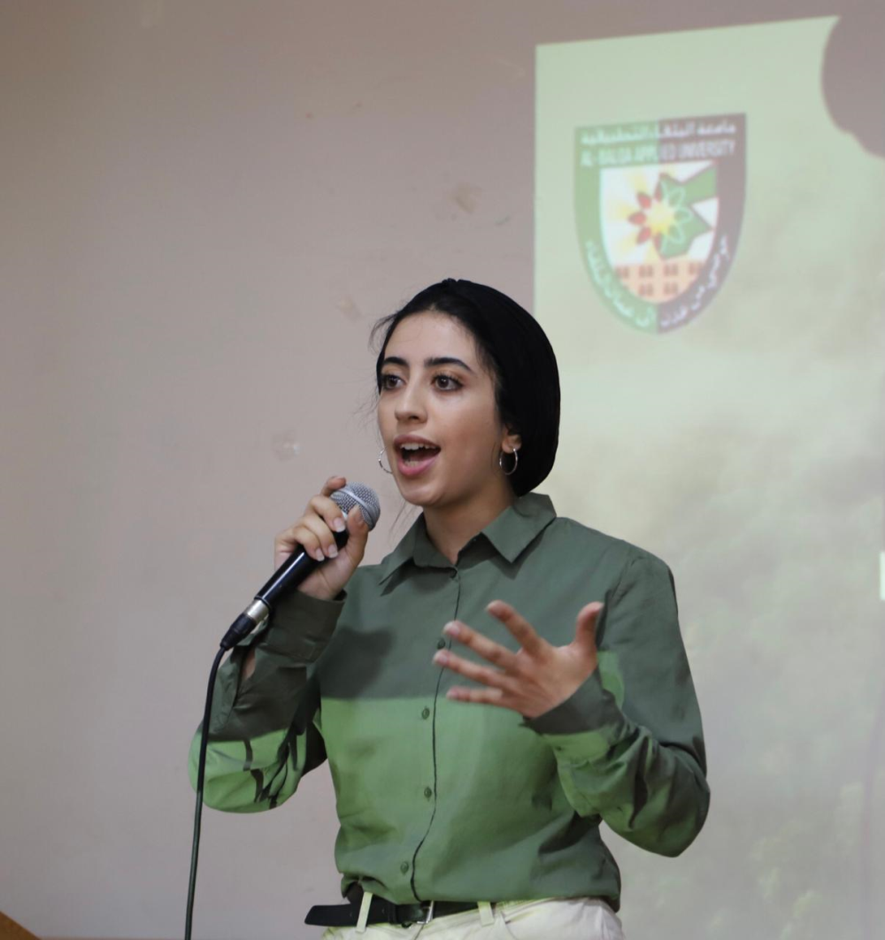 بدورها تحدثت الطالبة زينه ابو البصل من فريق النادي البيئي التابع لعمادة شؤون الطلبة عن دعم رئيس الجامعة الدكتور العجلوني لمبادرات وأنشطة الطلبة اللامنهجية ودور العمادة ممثلة بعميدها الاستاذ الدكتور خالد الزعبي في تفعيل جميع المبادرات التي تقام داخل الجامعة وخارجها ودعم الفريق المشارك من النادي البيئي في مشروع مختبر الاستدامة الاردني لمواجهة التحديات البيئية والتصدي لها .