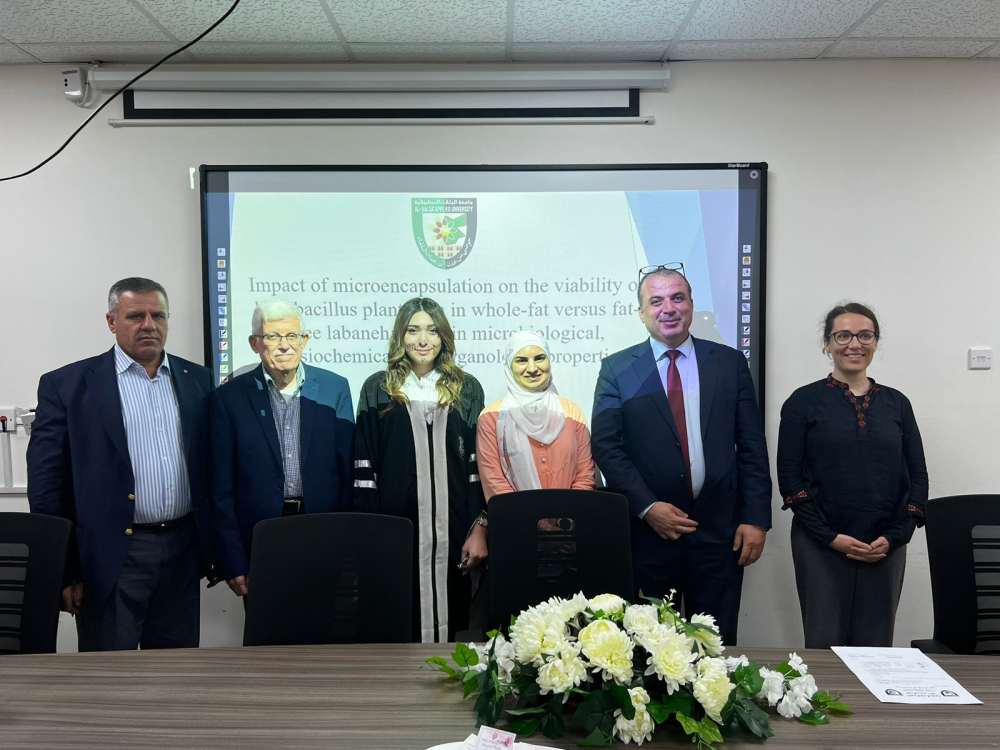 تم بمشيئة الله تعالى مناقشة رسالة الماجستير المقدمة من طالبة الدراسات العليا في قسم التغذية و التصنيع الغذائي نورا سمير فايق مسعود صباح بعنوان "Impact of microencapsulation on the viability of lactobacillus plantarum in whole-fat versus fat-free labaneh: effect in microbiological, physiochemical, and organoleptic properties " وذلك يوم الثلاثاء الموافق 4/6/2024 في قاعة الندوات / كلية الزراعة الساعة الحادية عشر صباحا. حيث ضمت لجنة المناقشة كل من: