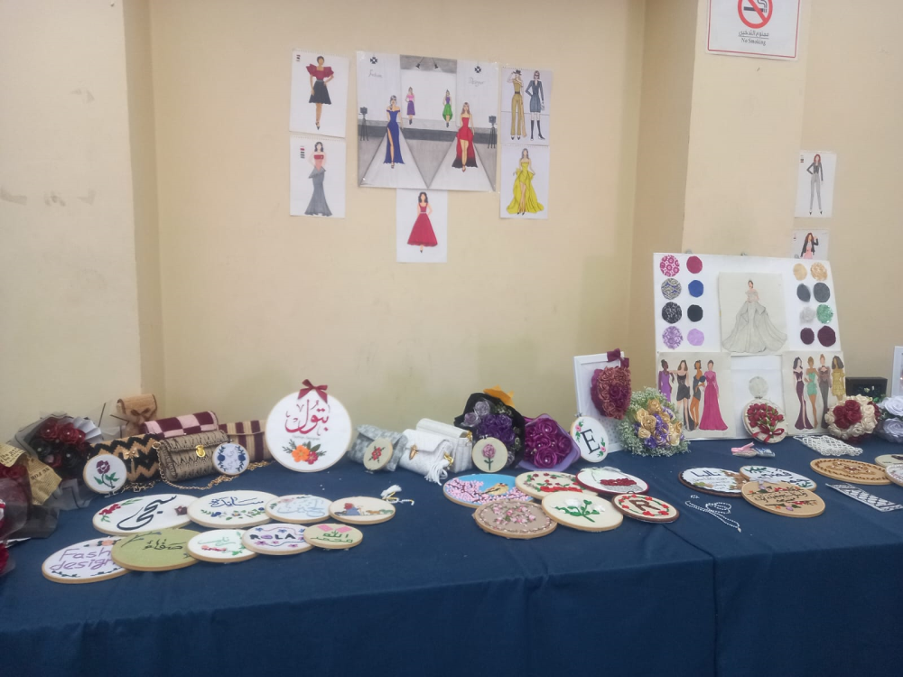 واشتمل المعرض على العديد من الاعمال المميزة والتي تنوعت بين بدلات عرائس وفساتين سهرة متنوعة وملابس اطفال وتطريز واشغال خرز بانواعها ونسيج بالصوف واشغال يدوية فنية ورسومات فنية