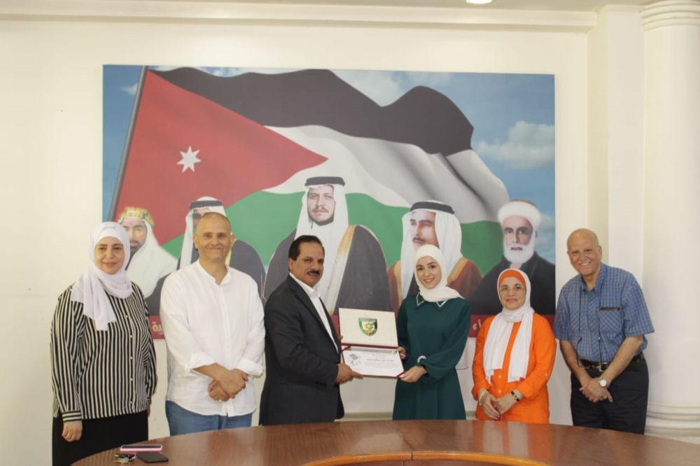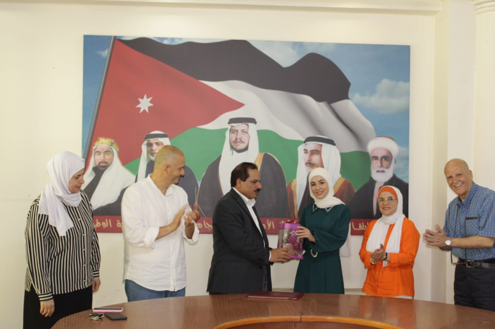 انطلاقًا من حرص جامعة البلقاء التطبيقية على مد جسور التواصل مع خريجاتها ووسط أجواء من البهجة والسرور رعى عميد كلية الأميرة عالية الجامعية الأستاذ الدكتور ناجي السعايدة وبالتنسيق مع مساعد العميد لشؤون التطوير والتدريب والجودة / شعبة متابعة الخريجين حفل تكريم الطالبة هبة ابراهيم احمد الحاصلة على المرتبة الأولى على مستوى المملكة في امتحان الشهادة الجامعية المتوسطة الشامل للدورة الربيعية 2024 تخصص الارشاد وتمكين الأسرة  وبمعدل (90.2)
