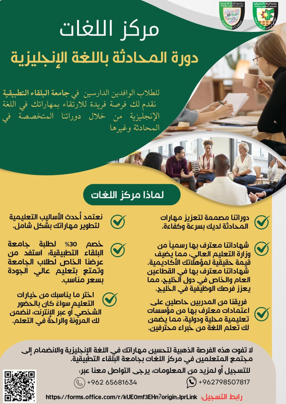 دورة محادثة اللغة الإنجليزية في مركز اللغات في جامعة البلقاء التطبيقية