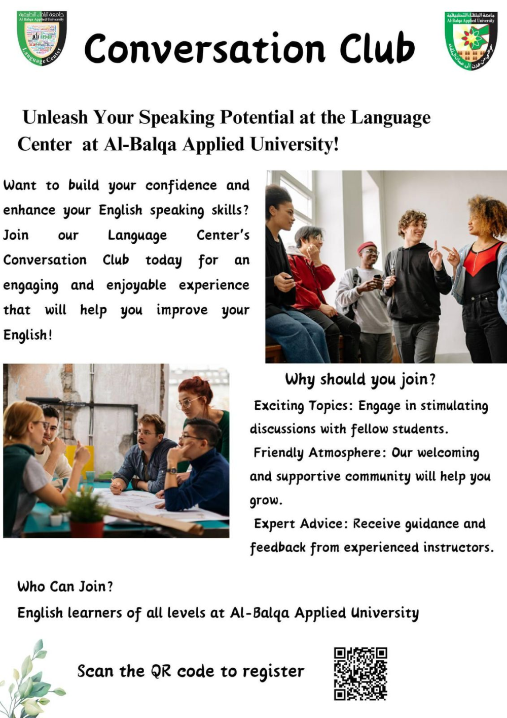 Join the *Conversation Club at the Language Center, Al-Balqa Applied University!