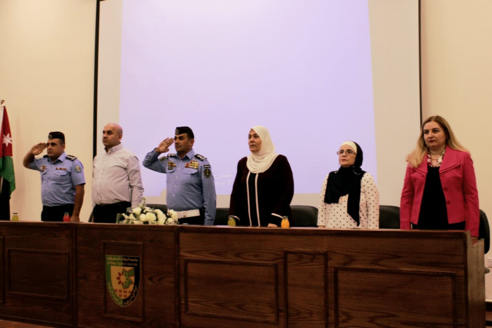 حيث بدأت الجلسة الحوارية بالسلام الملكي فكلمة  لنائب العميد لشؤون الدراسات العليا والبحث العلمي ثمنت فيها الجهود المشتركة بين أسرة الكلية ومديرية الإعلام والشرطة المجتمعية  من خلال سلسلة المحاضرات والندوات التي تنظمها الشرطة المجتمعية والتي تستهدف فئة الشباب لغاية توعيتهم في كافة المجالات الأمنية.