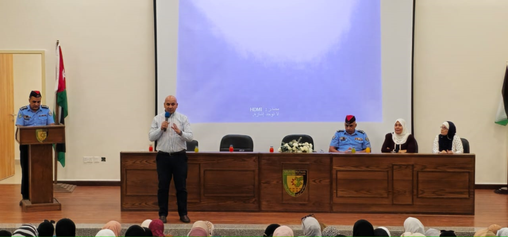 تبعه النقيب أيوب أبو ربيع /وحدة مكافحة الجرائم الإلكترونية حيث استعرض المهام المناطة بوحدة الجرائم الإلكترونية والتي تتمثل بتوعية مستخدمي الشبكة العنكبوتية ومواقع التواصل الاجتماعي بالاستخدام الآمن لتلك المواقع، والجرائم التي تقع على الأشخاص وعلى الأموال ،وأن بعض الجرائم أصبحت ترتكب عبر الوسائل الإلكترونية مثل: جرائم الاحتيال والابتزاز وانتحال الشخصية.