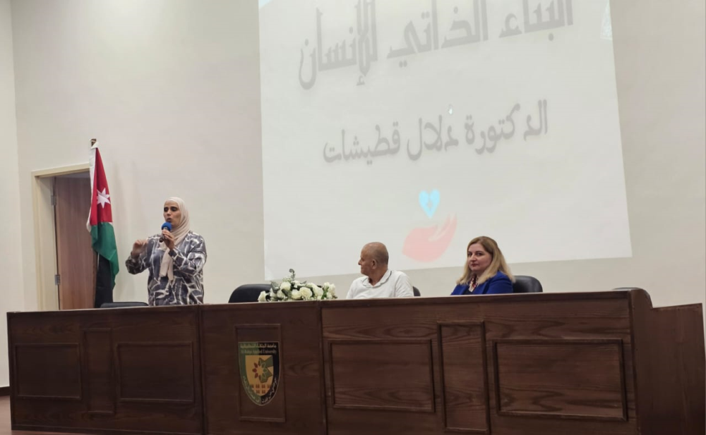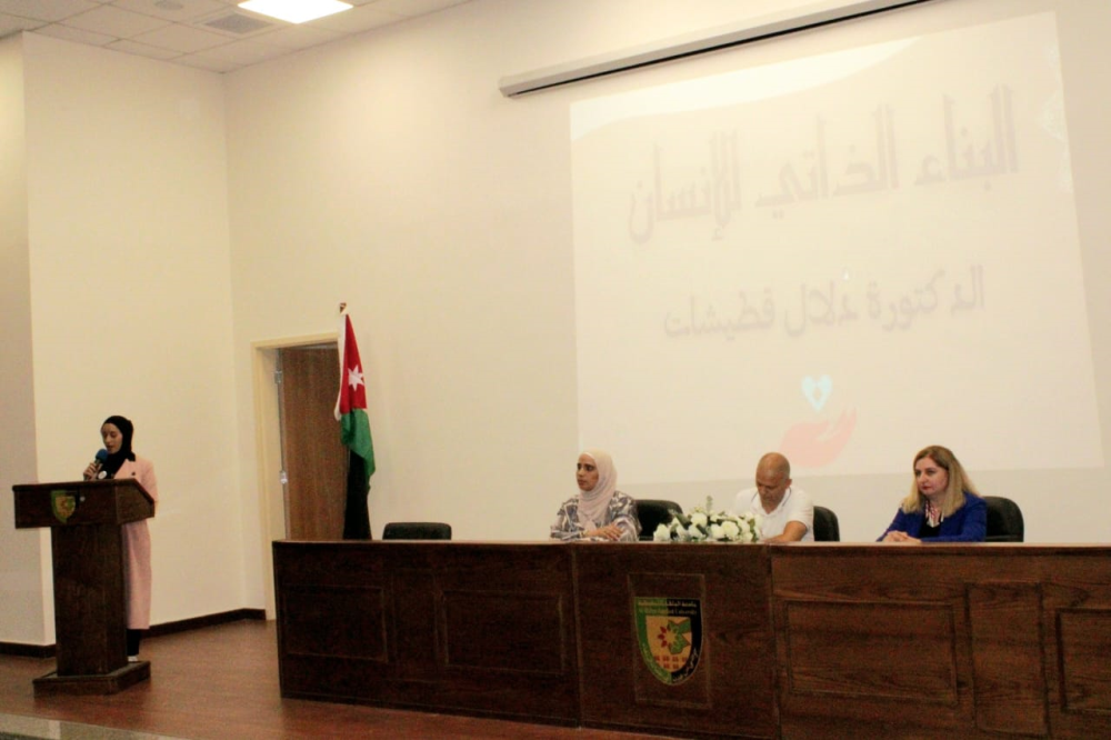إنطلاقاً من دور جامعة البلقاء التطبيقية الريادي وبتوجيهات من عميد كلية الأميرة عالية الجامعية الأستاذ الدكتور ناجي السعايدة  في تشجيع الأنشطة اللامنهجية والإبداعية للارتقاء بشخصية الطالب الجامعي للمشاركة الفاعلة في بناء المجتمع وبالتنسيق مع مساعد العميد للشؤون الطلابية  رعى نائب العميد للشؤون الاكاديمية الأستاذ الدكتور طارق أبو هزيم محاضرة بعنوان                    ( البناء الذاتي للإنسان) للباحثة الدكتورة دلال قطيشات .