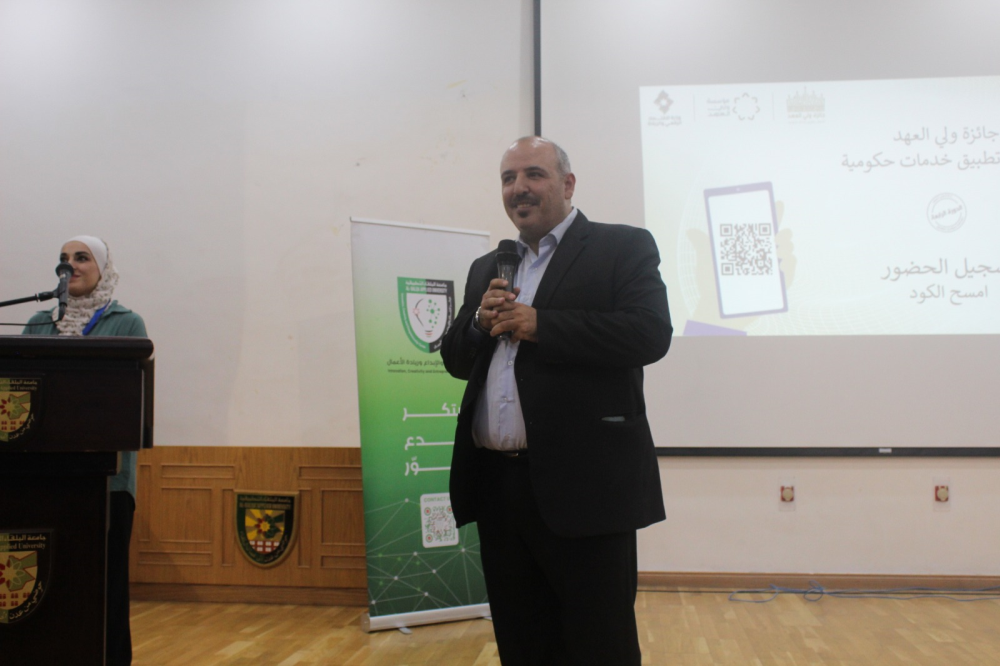 نظم مركز الابداع والابتكار وريادة الأعمال في جامعة البلقاء التطبيقية وبالتعاون مع وزارة الاقتصاد الرقمي والريادة، ومؤسسة ولي العهد، ورشة توعوية حول جائزة ولي العهد لأفضل تطبيق خدمات حكومية بحضور عميد كلية الأمير عبدالله بن غازي للاتصالات وتكنولوجيا المعلومات الاستاذ الدكتور عبدالودود مصلح ومدير مركز الابداع والابتكار وريادة الأعمال الأستاذ الدكتور البراء عوجان وطلبة الجامعة.