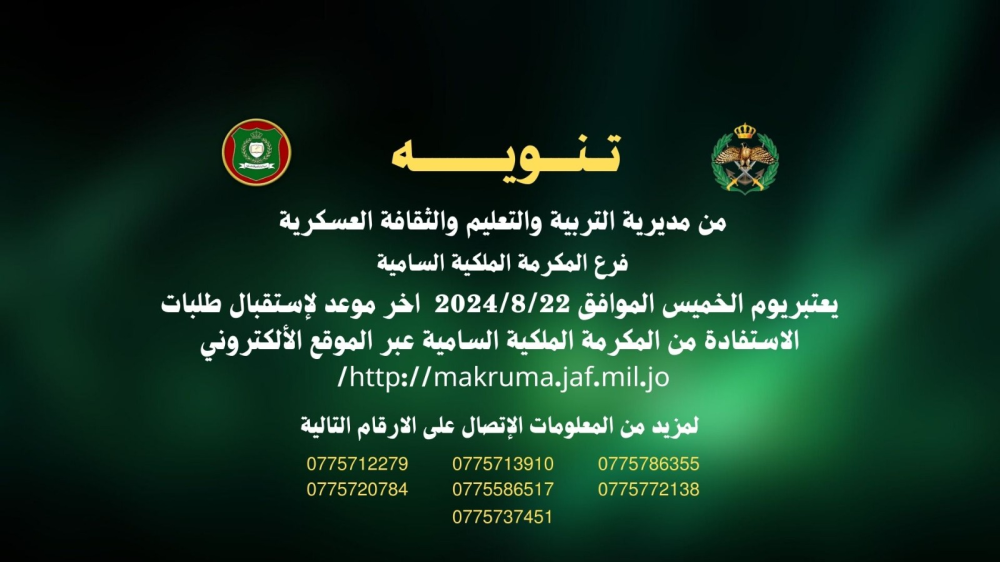 تنويه من مديريه التربيه والتعليم والثقافه العسكريه فرع المكرمه الملكيه الساميه