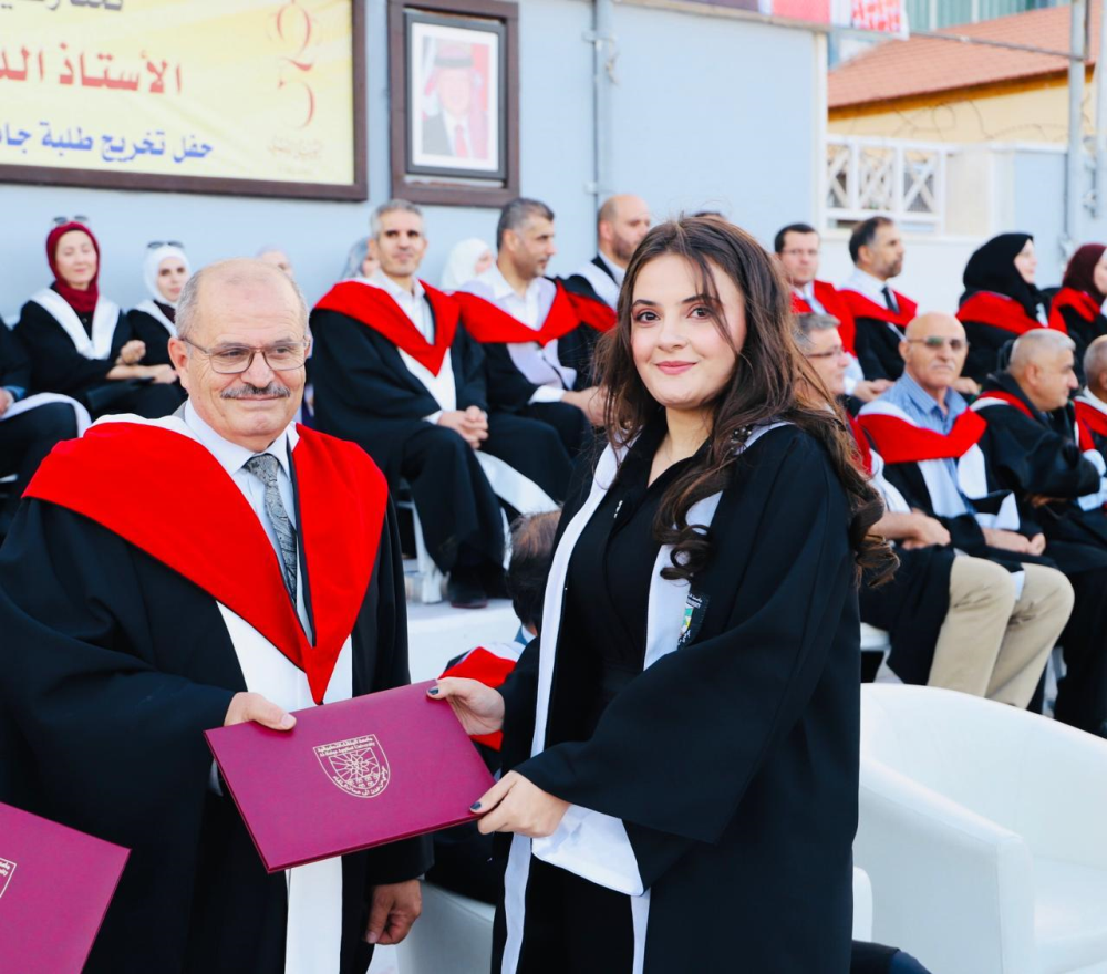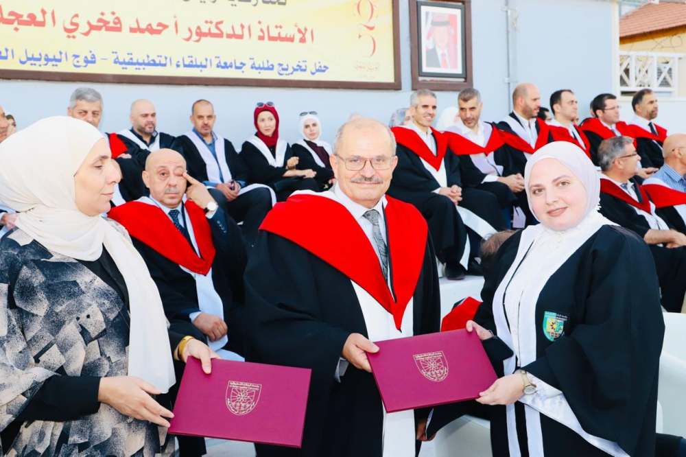مندوباً عن رئيس جامعة البلقاء التطبيقية الأستاذ الدكتور أحمد فخري العجلوني رعى نائب عميد كلية الهندسة التكنولوجية الاستاذ الدكتور احمد طالب الشواقفة تخريج الفوج الرابع والعشرون لطلبة الكلية لمرحلتي ( الدبلوم ، البكالوريوس ) بحضور عميد شؤون الطلبة الأستاذ الدكتور خالد ناصر الزعبي والمسجل العام الدكتور زكريا عطيات والهيئة التدريسية وأهالي الطلبة وذلك على الملعب الرئيسي في الجامعة.