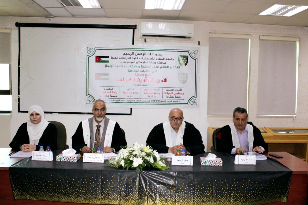 مناقشة رسالة ماجستير للطالبة الاء رياض الخواجا في كلية الأميرة عالية الجامعية