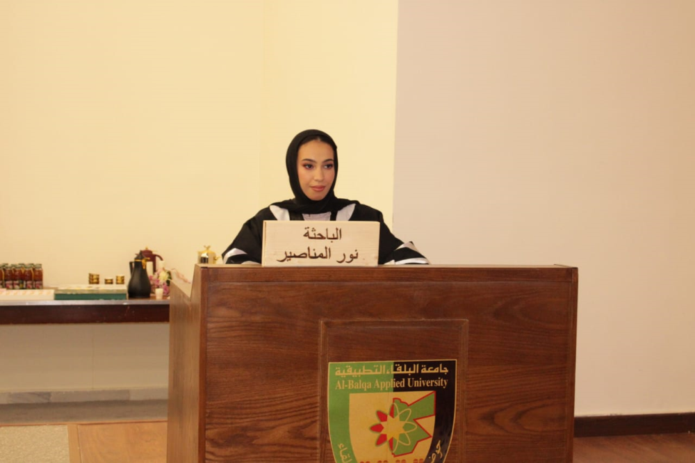 مناقشة رسالة ماجستير للطالبة نور احمد المناصير في كلية الأميرة عالية الجامعية