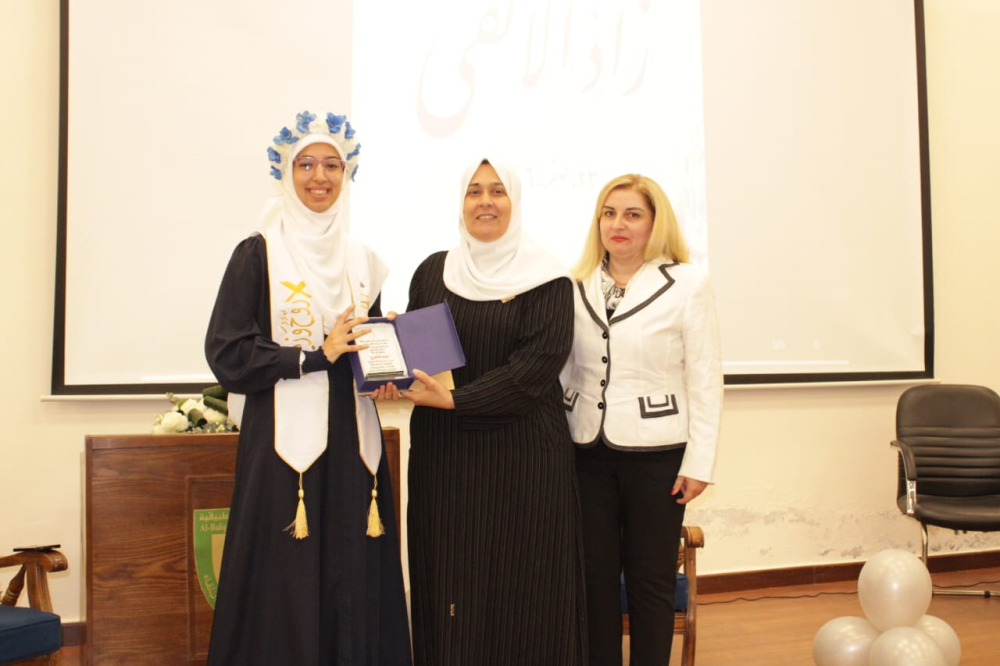 وفي نهاية المحاضرة تم تكريم الدكتورة عرين المجالي والطالبة مريم قشوع