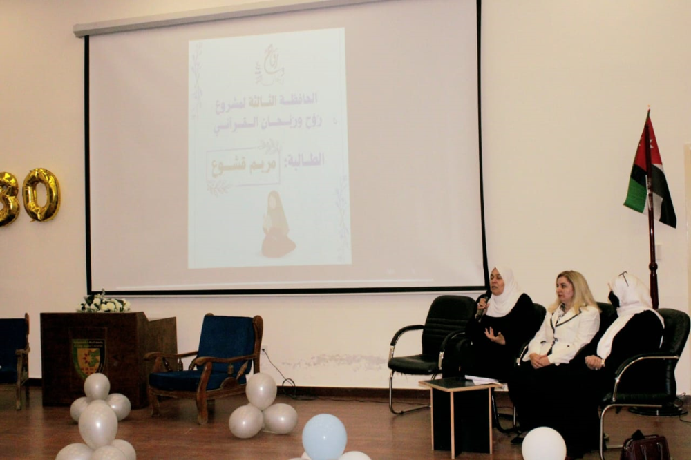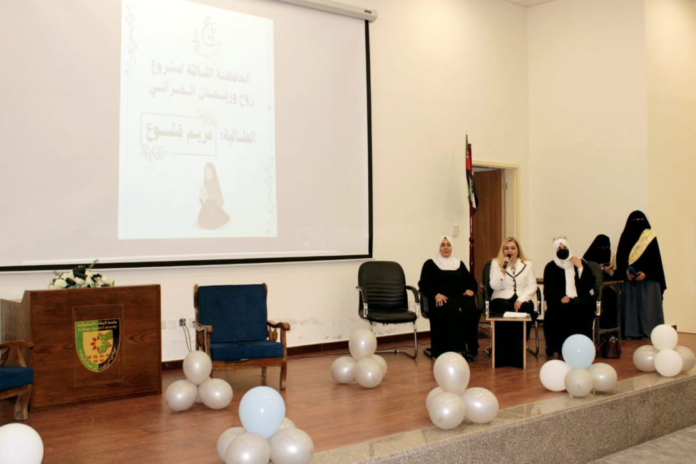 ثم استضافت الدكتورة المجالي الطالبة الحافظة للقرآن الكريم مريم قشوع تخصص بكالوريوس تربية خاصة موهبة وابداع/ كلية الاميرة عالية الجامعية ، لتستفيد الطالبات من تجربتها في حفظ كتاب الله وكيف وفقت بين الحفظ والدراسة واثره في حياتها العلمية والعملية والبركة التي أنزلها الله تعالى عليها وتيسيره عز وجل لتداوم على الحفظ وشعورها عند وصولها لحفظ القران الكريم كاملاً