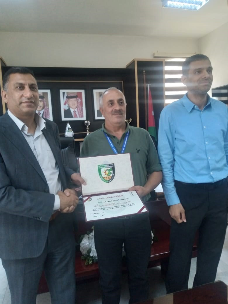 انسجامًا مع توجهات جامعة البلقاء التطبيقية في تحسين الأداء والتطوير وتحفيز قيم التنافس البنّاء في العمل لدى الموظفين قام عميد كلية الهندسة الأستاذ الدكتور رضوان دويري بتسليم شهادة الموظف المثالي عن شهر آب /2024 للموظف مأمون رضوان العربيات وذلك تقديرا لجهوده المتميزة في خدمة الكلية، مقدما شكره لكافة العاملين في الكلية داعيا الجميع الى العمل بروح الفريق الواحد وتحقيق الانجاز وتعزيز قيم الانتماء الوظيفي للجامعة