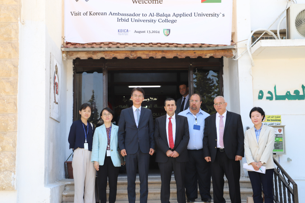 قام سفير دولة كوريا الجنوبية في الأردن كيم بيل وو بزيارة إلى جامعة البلقاء التطبيقية – كلية اربد الجامعية، يرافقه مديرة الوكالة الكورية للتعاون الدولي في الأردن السيدة كيم سويونج، حيث كان في استقباله رئيس جامعة البلقاء التطبيقية الأستاذ الدكتور أحمد فخري العجلوني، والدكتور عمر عربيات مدير المشروع والأستاذ الدكتور يحيا خريسات عميد كلية اربد الجامعية.