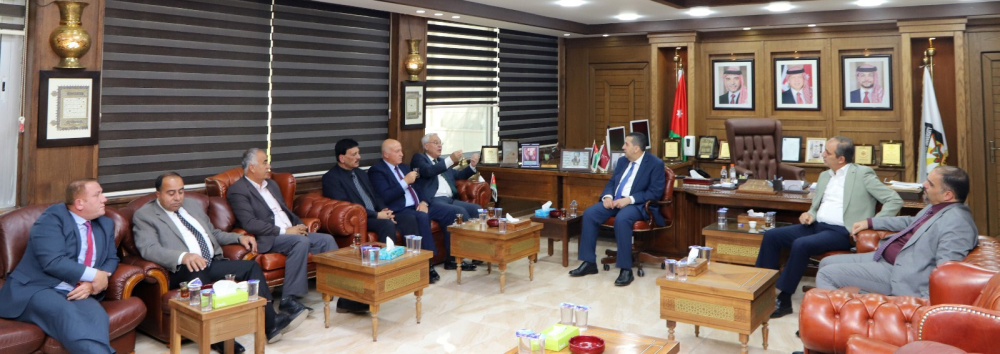 إستقبل رئيس جامعة البلقاء التطبيقية الأستاذ الدكتور أحمد فخري العجلوني اليوم في مكتبه بحضور نائب الرئيس للشؤون الإدارية الأستاذ الدكتور خليل الحياري ونائب الرئيس لشؤون المراكز وخدمة المجتمع المحلي الأستاذ الدكتور خالد ناصر الزعبي وفدا من أهالي منطقة علان ضم اللواء المتقاعد عبدالرحيم الزعبي، النائب السابق محمد ناصر الزعبي، العميد المتقاعد أمجد محمد الزعبي، العقيد المتقاعد عبدالله موسى الزعبي، الدكتور وضاح الزعبي والسيد محمد رضوان الزعبي.