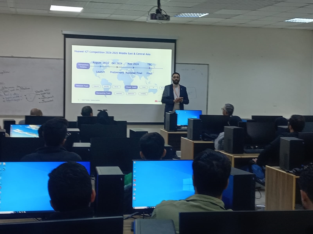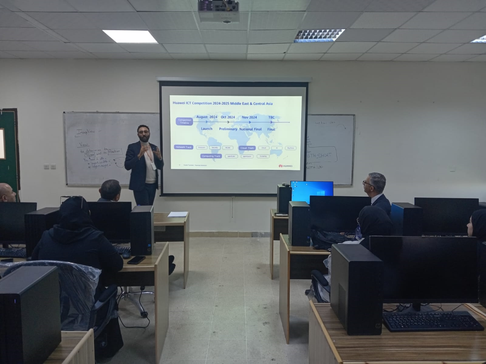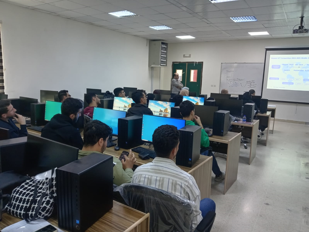 وعلى مدار اكثر من عام سعت الكلية على تدريب نخبة من طلبتها يفوق عددهم المئة طالب وطالبه في دورات تدريبة وعملية متخصصه في مجال الذكاء الاصطناعي، الحوسبة السحابيه، وشبكات الحاسوب، وحصل جميع المتدربين على شهادة HCIA من شركة HUAWEI الرئيسية في الصين.