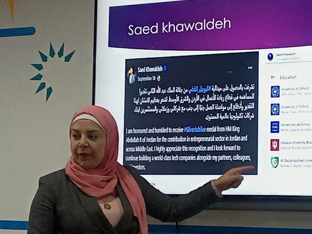 من جهة أخرى، سلطت الدكتورة عبير الحياري الضوء على الذكاء الاصطناعي وتطبيقاته في المشاريع الريادية، حيث تناولت كيفية استخدام الذكاء الاصطناعي لدعم الابتكار وقصص نجاح في هذا المجال. وفي السياق ذاته، قدمت المدربة أنيسة خرابشة ورشة حول بناء فريق العمل، موضحة أهمية العمل الجماعي ومراحله في المشاريع الريادية.
