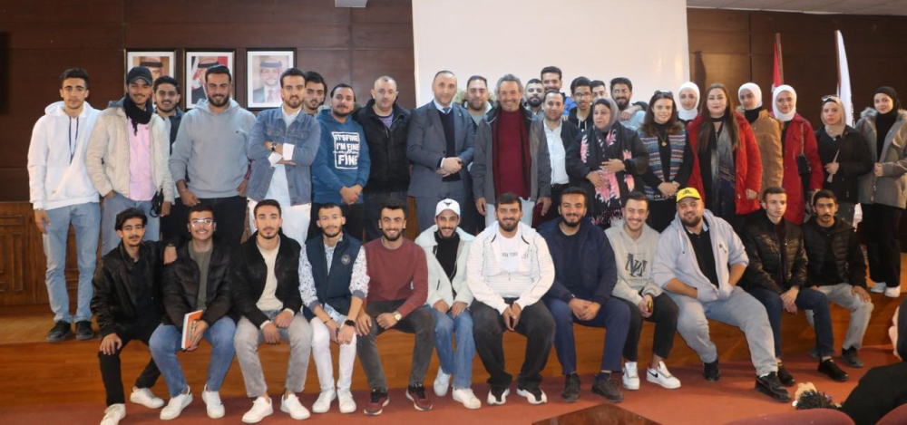وتخلل الجلسة مداخلات واستفسارات من الطلبة أجاب عنها الدكتور الزيود .