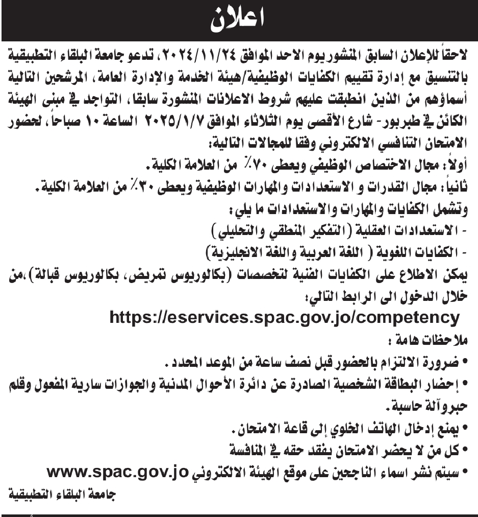 اعلان هام لاحقا للاعلان السابق المنشور يوم الاحد الموافق 24/11/2024