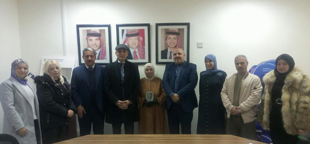 كرّم نائب رئيس الجامعة لشؤون المراكز والمجتمع المحلي، الأستاذ الدكتور خالد الزعبي، السيدة منية العرايضة بمناسبة انتهاء خدمتها في الجامعة بمركز الابتكار والإبداع وريادة الأعمال حيث تم تقديم درع تذكاري و شهادة تقدير تعبيراً عن امتنان الجامعة لما قدمته من خدمات جليلة. وأشاد نائب الرئيس بجهودها وتفانيها في العمل طوال فترة خدمتها، مشيراً إلى أنها كانت مثالاً يحتذى به في الالتزام والإخلاص.