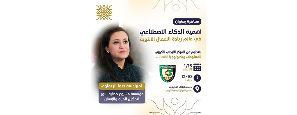 يسر المركز الاردني الكوري للمعلومات وتكنولوجيا الإتصالات وبالتعاون مع وحدة التنمية وخدمة المجتمع المحلي في جامعة البلقاء التطبيقية دعوتكم لحضور الورشة التدريبية بعنوان
