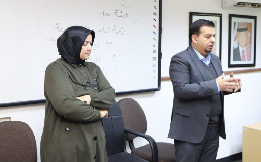 رحب مدير المركز الدكتور محمد هاشم الريالات في بداية الورشة بالزملاء المشاركين وقدم نبذة تعريفية حول دور المركز في دعم الطلاب وتزويدهم بالمهارات العصرية اللازمة لتأهيلهم لسوق العمل وتجسير الفجوة بين الدراسة الجامعية ومتطلبات السوق. كما أكد الدكتور الريالات على أهمية دعم الطلاب الصم ومساندتهم وتوجيههم لإدماجهم في البيئة الجامعية وتعزيز تواصلهم مع الزملاء والأكاديميين والإداريين في الجامعة.