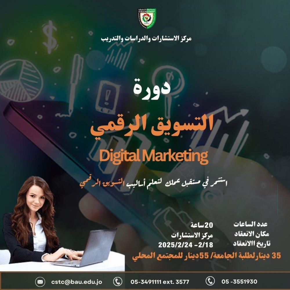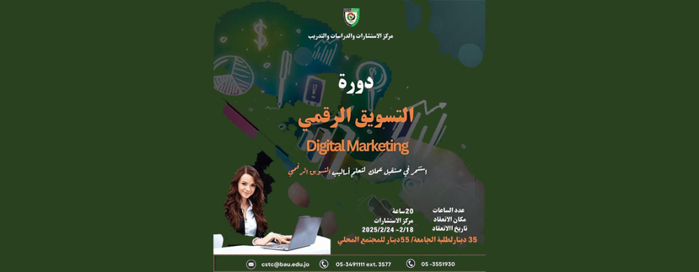 يعلن مركز الاستشارات في جامعة البلقاء التطبيقية عن عقد دورة التسويق الرقمي
