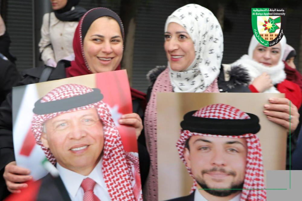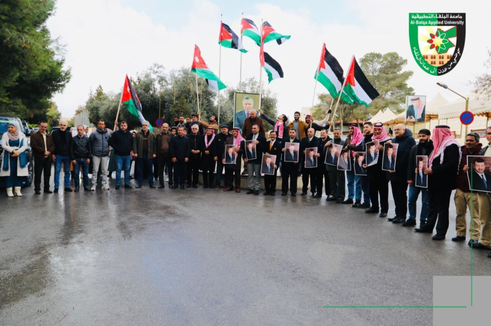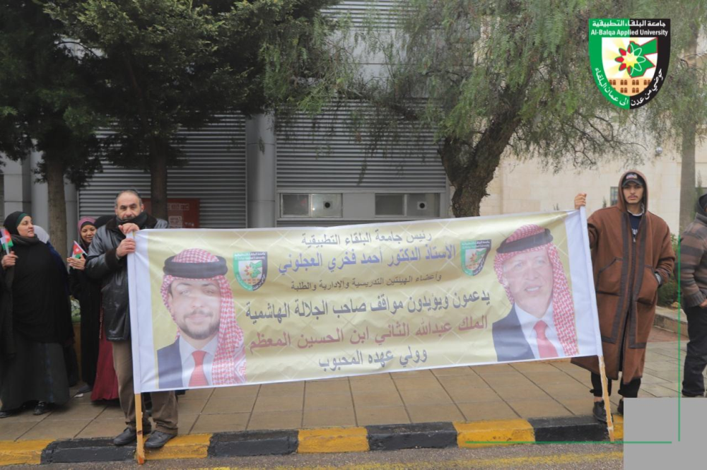 في تجسيد واضح للالتفاف الشعبي حول القيادة الهاشمية، نظّمت جامعة البلقاء التطبيقية وقفةً داعمة لمواقف جلالة الملك عبدالله الثاني الثابتة من القضية الفلسطينية داخل الحرم الجامعي . واختتمت الوقفة بتسيير حافلات نقلت أسرة الجامعة من أعضاء الهيئتين التدريسية والإدارية والطلبة للمشاركة في استقبال جلالته وولي عهده الأمير الحسين بن عبدالله بعد عودته من الولايات المتحدة الأمريكية، تأكيداً على دعم الجامعة المطلق لمواقف جلالته الثابتة في الدفاع عن القضية الفلسطينية وترسيخ الوحدة الوطنية الأردنية.