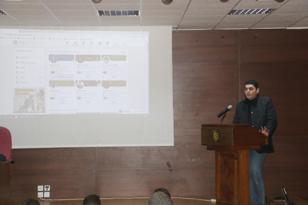 قدم الورشة المدرب عدي عابد، خريج الكلية ماجستير إدارة الأعمال لعام 2018، بمشاركة ثلاثين طالبًا وخريجًا، وبحضور مساعد العميد لشؤون التخطيط والتطوير والجودة، م.ربى العقلة، ورئيس شعبة متابعة الخريجين، السيدة روان عميره.