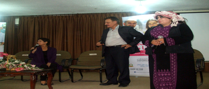 وبينت السيدة نانسي علاء الدين مسؤولة التثقيف الصحي التابع لمؤسسة الحسين للسرطان أن هذا البرنامج هو برنامج وطني توعوي، يهدف الى توعية السيدات والمجتمع المحلي بأهمية الكشف المبكر عن سرطان الثدي، من خلال العروض المسرحية الهادفة التي تعرض في كافة محافظات المملكة بالتعاون مع هيئة شباب كلنا الأردن، لتشجيع السيدات على الفحص الدوري والكشف المبكر عن سرطان الثدي .