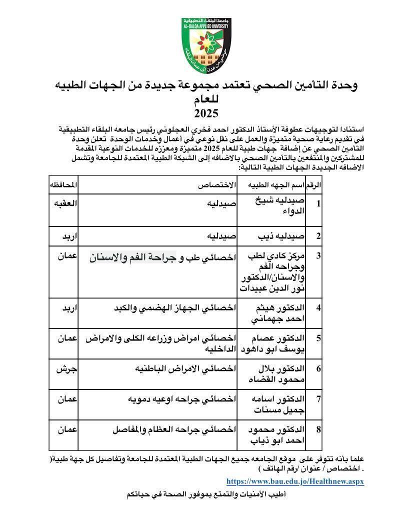وحدة التأمين الصحي تعتمد مجموعة جديدة من الجهات الطبية للعام 2025