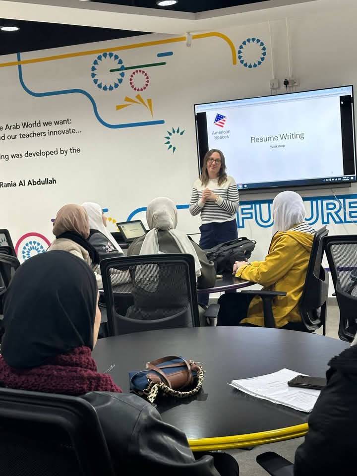 ضمن فعاليات سلسلة الورش التدريبية "Finding a Job"، نظّم مركز اللغات في جامعة البلقاء التطبيقية، وبالتعاون مع فريق American Spaces من السفارة الأمريكية في عمّان، الورشة الثالثة من السلسلة، وذلك يوم الثلاثاء الموافق 15 نيسان 2025، في مركز الجامعة / السلط، وجاءت بعنوان: