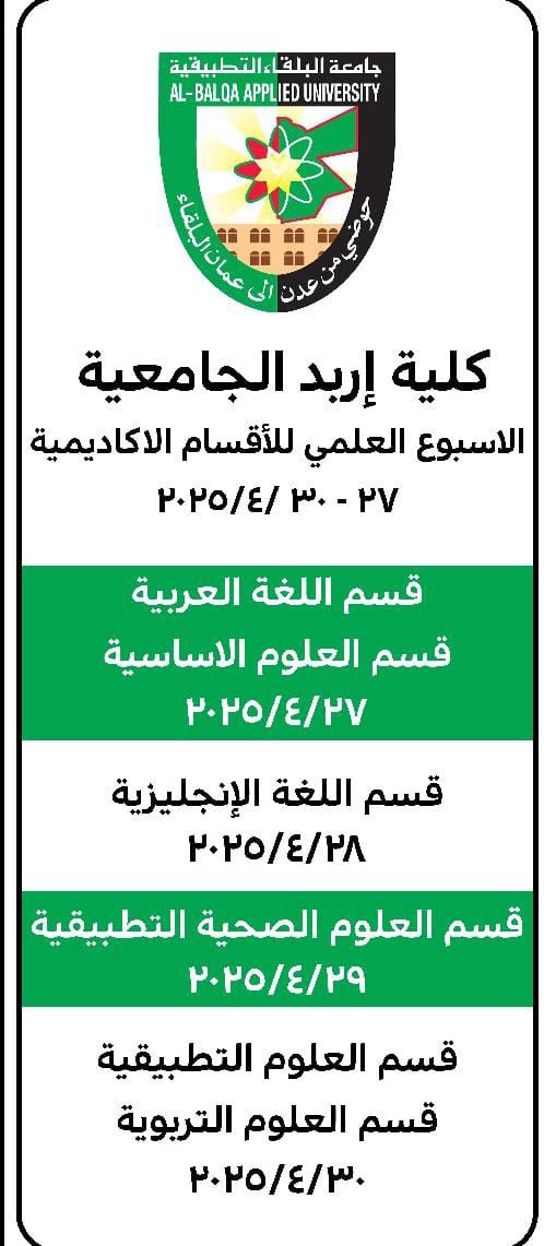 كلية إربد الجامعية تقيم الأسبوع العلمي للأقسام الأكاديمية