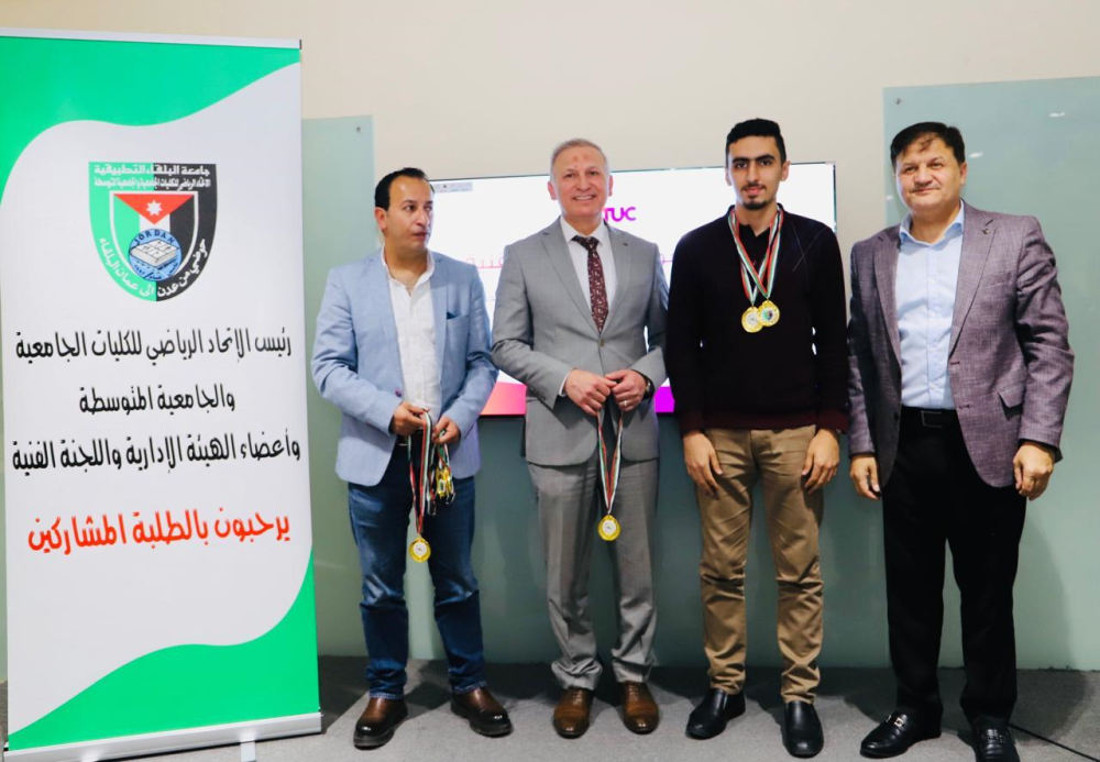 رعى عميد عميد شؤون الطلبة ،رئيس الاتحاد الرياضي للكليات الجامعية والجامعية المتوسطة الاستاذ الدكتور خلف ختاتنة ختام بطولة الشطرنج للطلاب والطالبات والتي نظمها الاتحاد الرياضي للكليات الجامعية والجامعية المتوسطة وبمشاركة (18) كلية حكومية خاصة وعسكرية وقد تميزت البطولة بروح رياضية عالية و تنافس شريف.