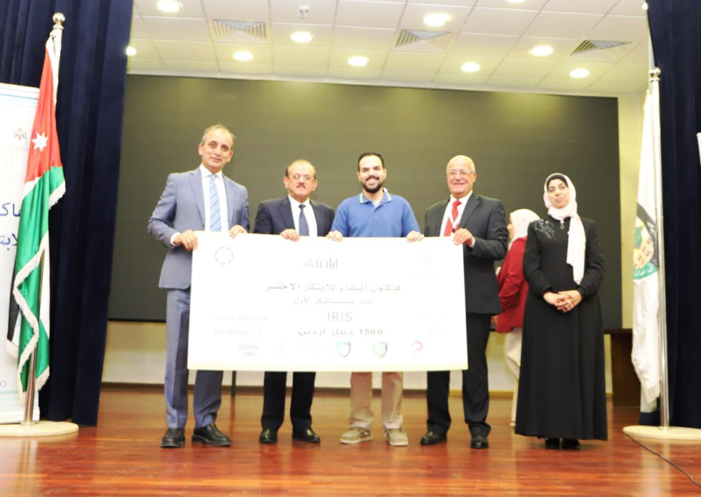 مندوبًا عن عطوفة رئيس جامعة البلقاء التطبيقية، رعى الأستاذ الدكتور خالد الزعبي، نائب الرئيس للشؤون الإدارية وشؤون المراكز وخدمة المجتمع المحلي، الحفل الختامي لفعاليات "هاكاثون البلقاء للابتكار الأخضر"، الذي نظمه مركز الابتكار والإبداع وريادة الأعمال في الجامعة، بالشراكة مع مبادرة إرادة، وبالتعاون مع منصة زين للإبداع (ZINC)، وشركة دينارك، ولجنة الأمم المتحدة الاقتصادية والاجتماعية لغربي آسيا (الاسكوا –ESCWA)