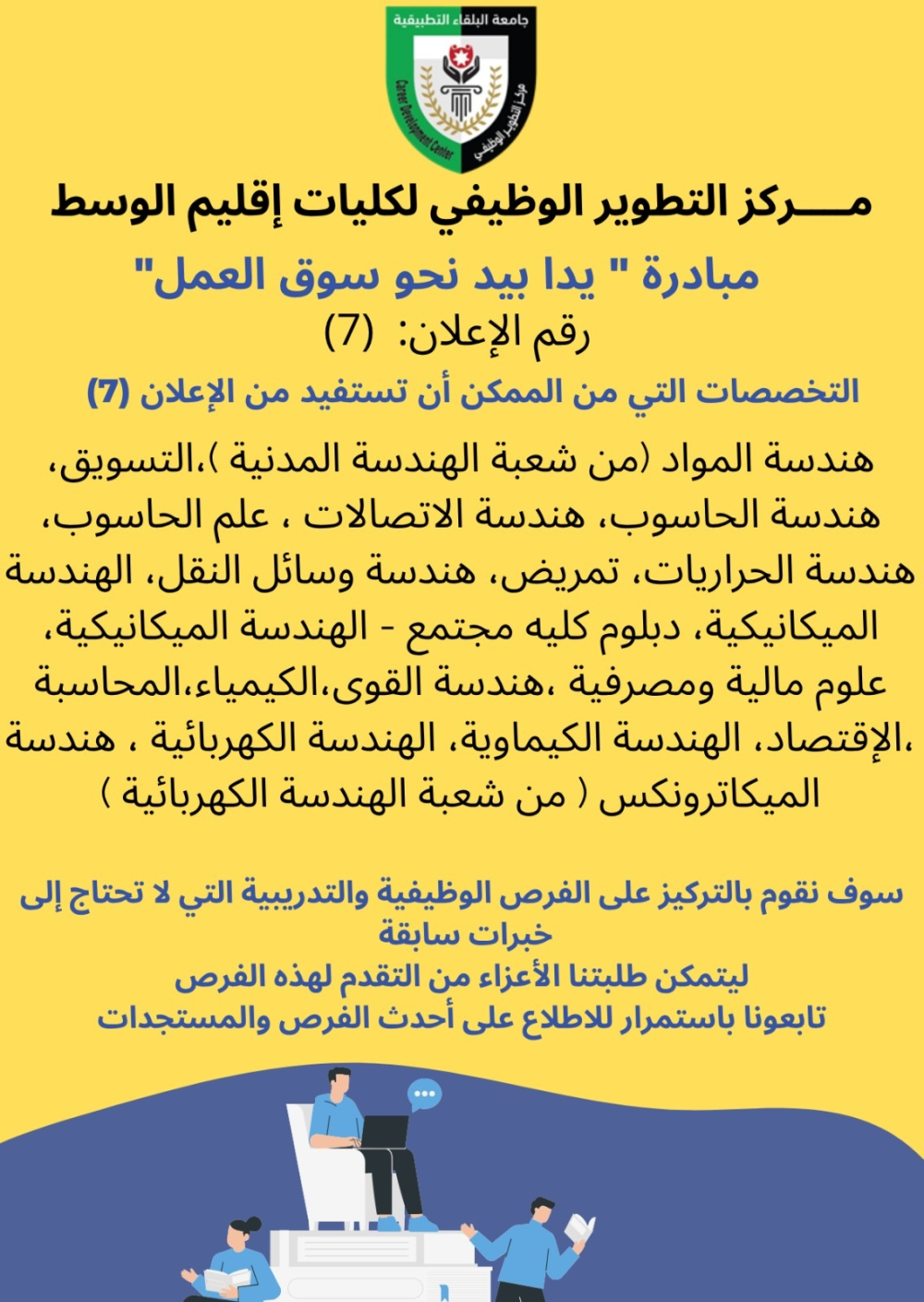 رقم الاعلان: اعلان (7) – مبادرة " يدا بيد نحو سوق العمل"