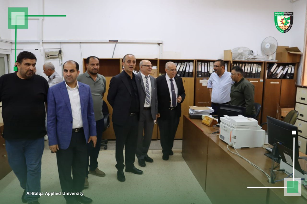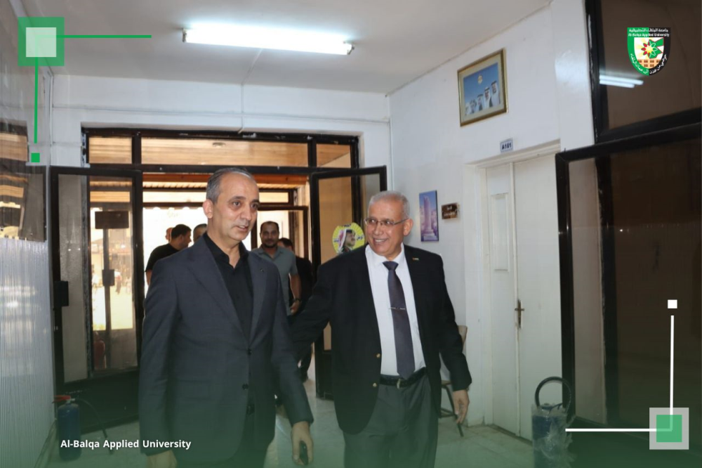 في إطار حرص جامعة البلقاء التطبيقية على متابعة واقع كلياتها ميدانيا، وبتوجيهات من عطوفة رئيس الجامعة الأستاذ الدكتور أحمد فخري العجلوني، قام الأستاذ الدكتور خالد ناصر الزعبي، نائب رئيس الجامعة للشؤون الإدارية وشؤون المراكز وخدمة المجتمع المحلي، بزيارة تفقدية إلى كلية إربد الجامعية.