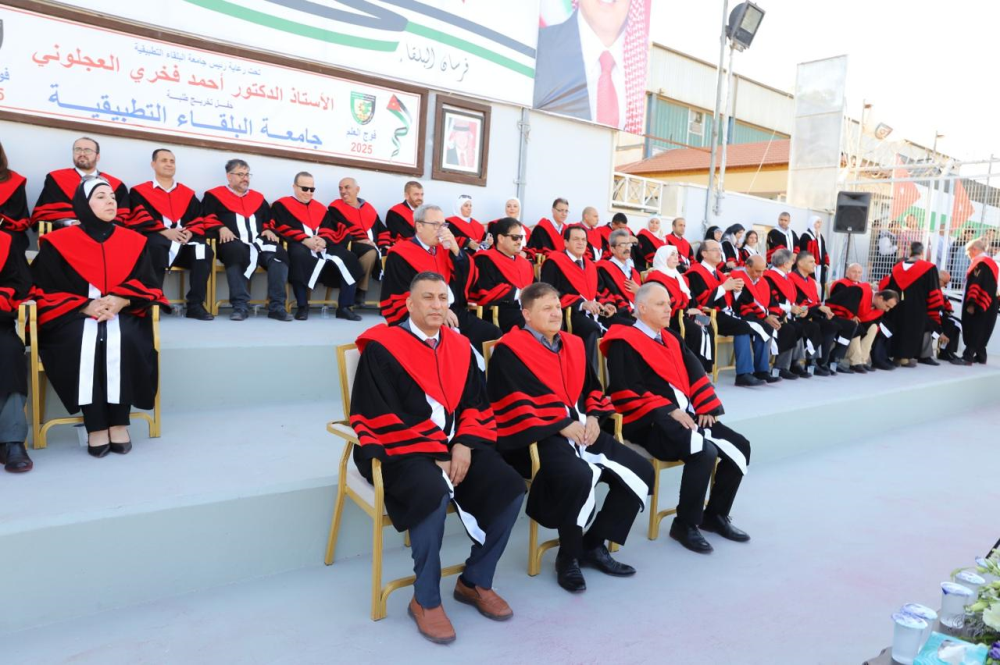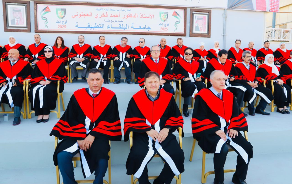 مندوبًا عن رئيس جامعة البلقاء التطبيقية، الأستاذ الدكتور أحمد فخري العجلوني، رعى عميد كلية الهندسة، الأستاذ الدكتور رضوان قاسم الدويري، وعميد كلية الزراعة التكنولوجية، الأستاذ الدكتور محمد سلامة العلاوي، حفل تخريج الفوج الخامس والعشرين من طلبة كليتي الهندسة والزراعة التكنولوجية، وذلك بحضور عميد شؤون الطلبة، الأستاذ الدكتور خلف ختاتنة، وأعضاء الهيئة التدريسية في الكليتين، وجمع غفير من أهالي الطلبة، على الملعب الرئيسي في الجامعة.