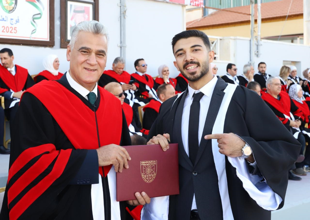 وهنأ العجلوني الطلبة الخريجين، معرباً عن اعتزازه وفخره بما حققوه من إنجاز أكاديمي يعكس التزامهم وطموحهم، مشيراً إلى أن هذا النجاح يمثل بداية لمسيرة مهنية متميزة في خدمة الوطن والمجتمع، داعياً إياهم إلى مواصلة التعلم والتطوير ليكونوا سفراء للعلم والمعرفة في كل موقع.