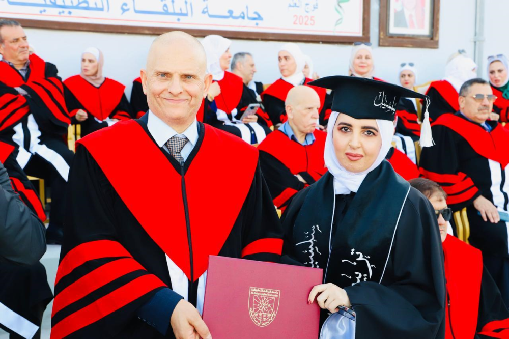 مندوبًا عن رئيس جامعة البلقاء التطبيقية، الأستاذ الدكتور أحمد فخري العجلوني، رعى القائم بأعمال عميد كلية الأميرة عالية الجامعية، الأستاذ الدكتور طارق أبو هزيم، حفل تخريج الفوج الخامس والعشرين "فوج العلم" من طالبات الكلية، والذي أُقيم على استاد الجامعة الرئيسي في السلط، بحضور عميد شؤون الطلبة، الأستاذ الدكتور خلف ختاتنة، وأعضاء الهيئة التدريسية، وجمعٍ كبير من ذوي الخريجات.