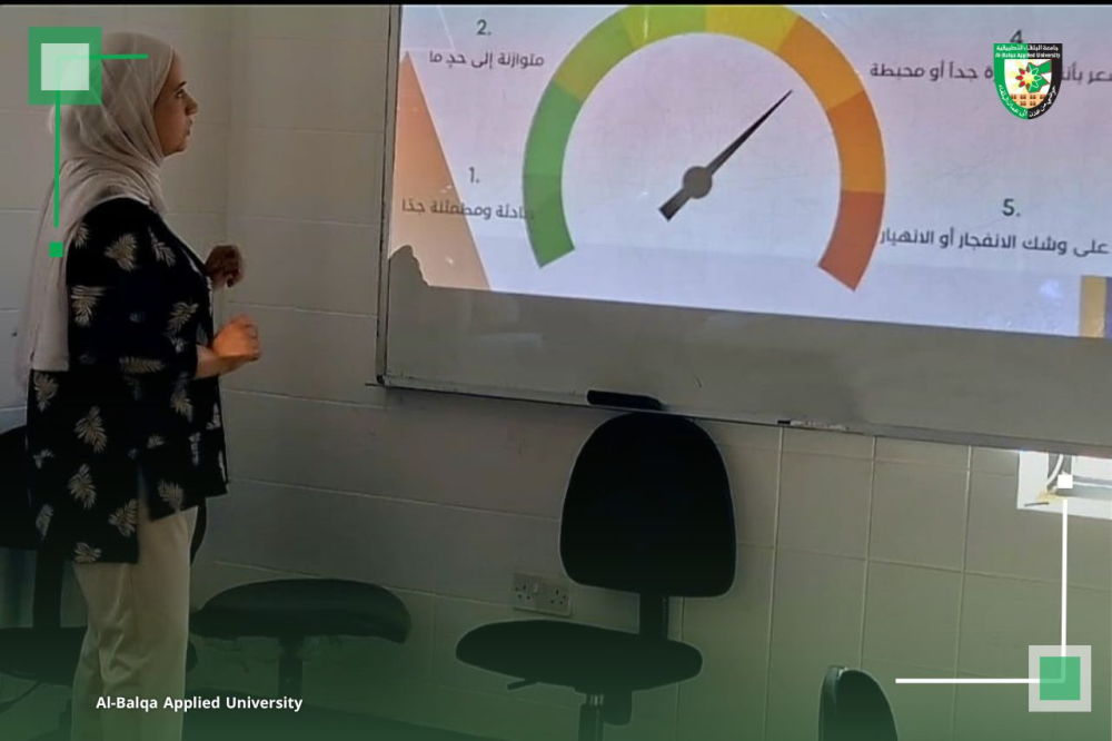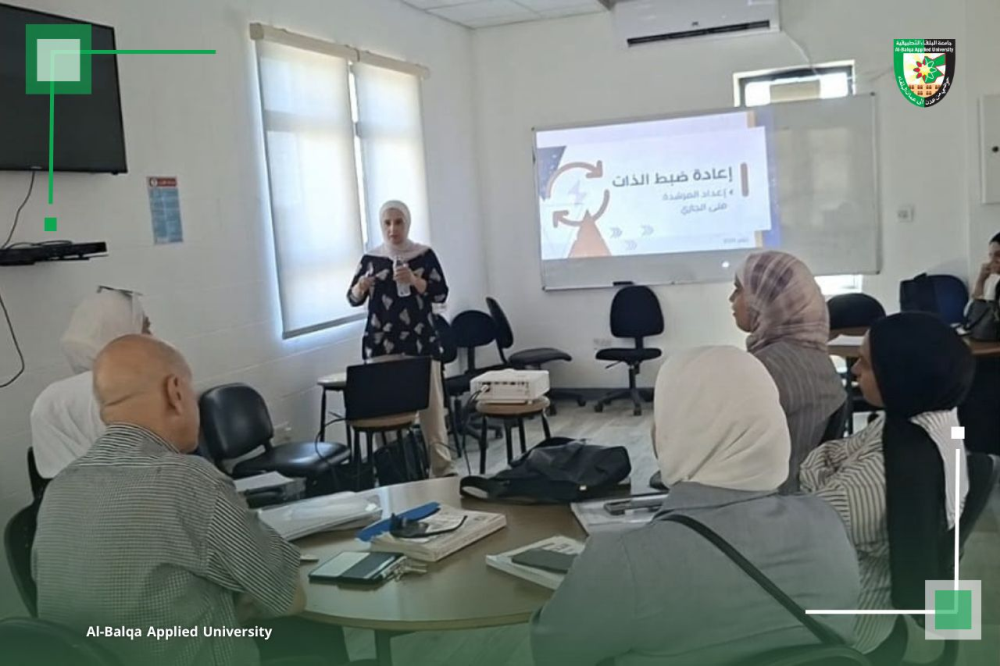 رعى الأستاذ الدكتور طارق أبو هزيم /قائم بأعمال عميد الكلية وبالتنسيق مع مساعد العميد للشؤون الطلابية الدكتورة مي الرقاد ورشة عمل بعنوان (إعادة ضبط الذات) قدمتها المرشدة منى الجازي