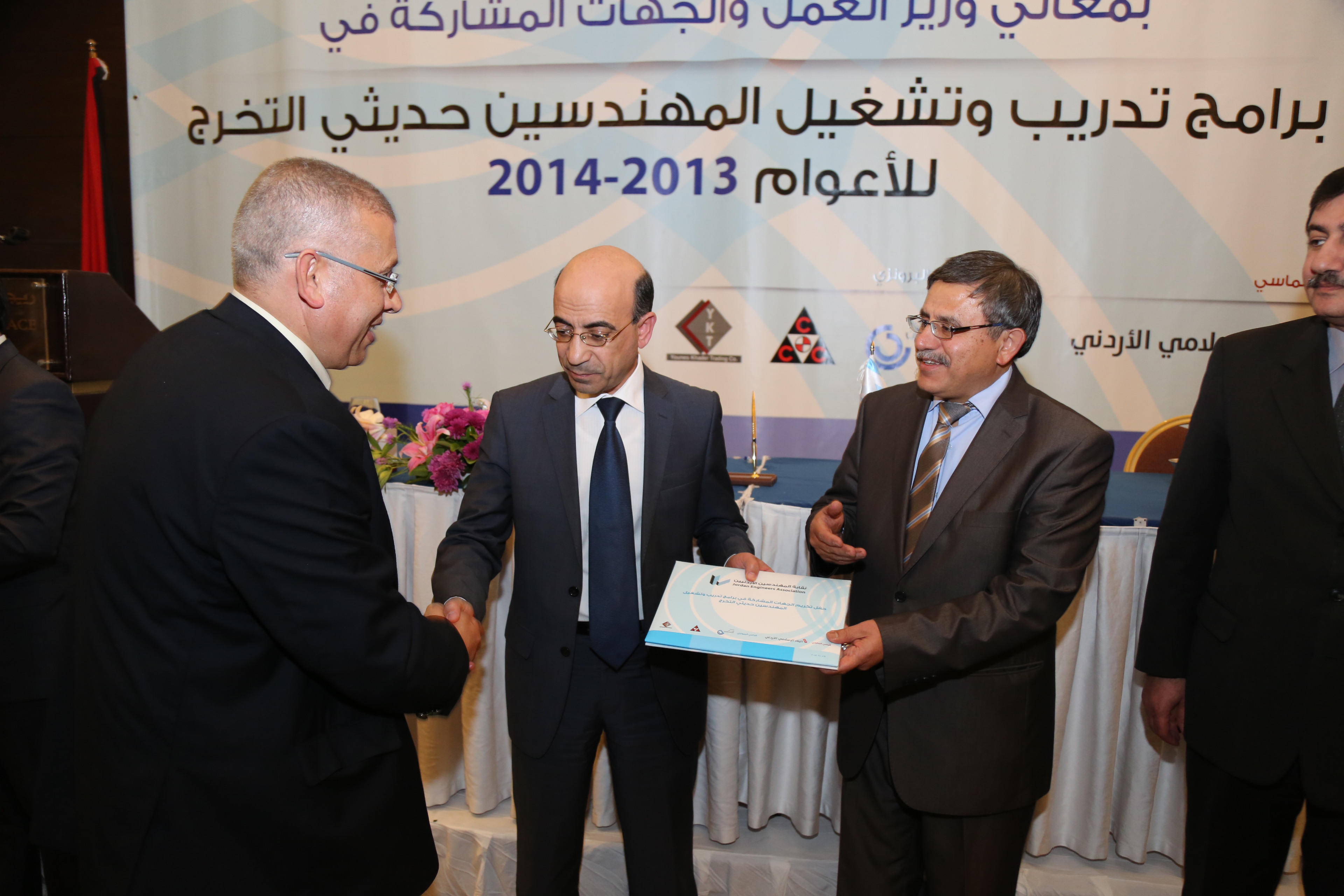 تقديرا لجهودها التي بذلتها في توفير فرص التدريب والعمل للمهندسين حديثي التخرج والتميز في طرح البرامج الملائمة كرمت نقابة المهندسين الأردنيين عميد كلية الحصن الجامعية الأستاذ الدكتور يحيا خريسات في حفل خاص أقيم في فندق الريجنسي في عمان .